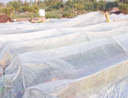 At a nursery in Islamabad, a gardener stretches an enormous plastic covering over frames holding newly sprouting saplings to protect the plants from the cold weather. Photo: ONLINE