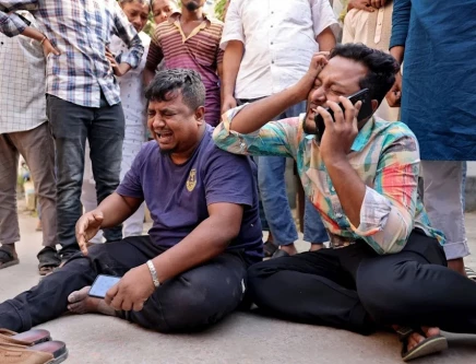 Men mourn the death of their relatives outside a hospital morgue following an earthquake in Dhaka, Bangladesh. Photo: Reuters