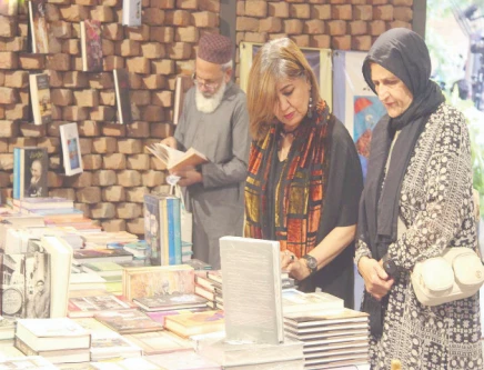 People browse through books at the Adab Festival on Sunday. Photo: NNI