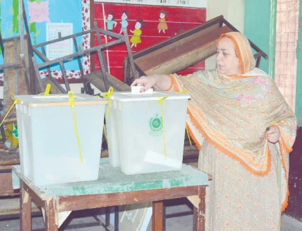 Electoral moment: A woman casts her vote in by-election in Faisalabad. Photo: Online