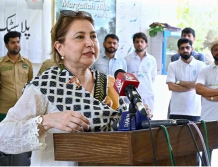 Secretary Ministry of Climate Change and Environmental Coordination Ms. Aisha Humera Moriani addressing the launching ceremony of the Clean-up Drive Initiative at the Margallah Hills, National Park and Trail 5. Photo: APP (file)