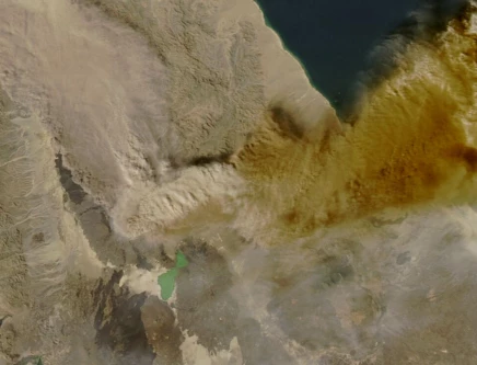 A satellite image shows ash rising from the eruption of the Hayli Gubbi volcano in Ethiopia as it drifts over the Red Sea. PHOTO: NASA/Handout via REUTERS