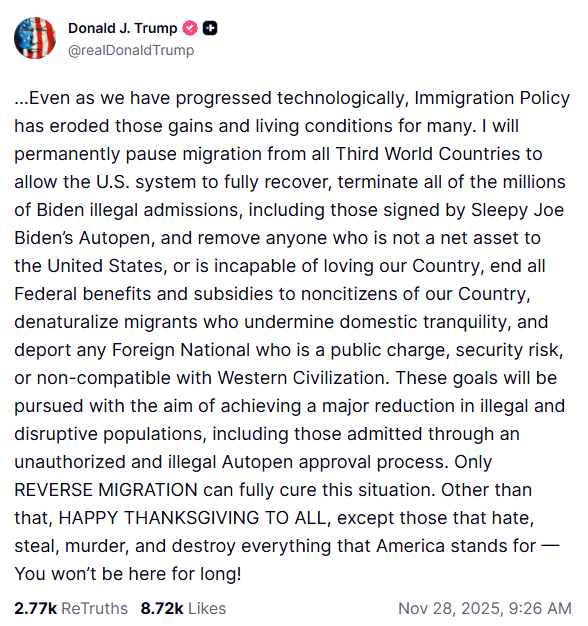 — USCIS Director Joseph B. Edlow (@USCISJoe) November 27, 2025