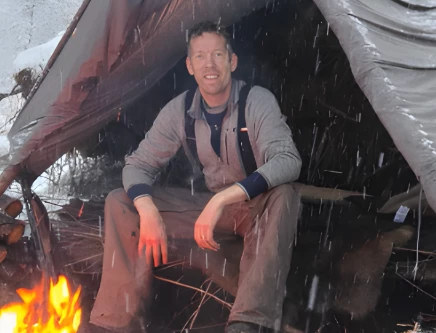 "Racing against the early Arctic sunset, he builds a fire-heated shelter from scratch, gathers enough wood for a 17-hour night, cooks moose stew over the flames, and even squeezes in a bit of gear talk along the way," states the description.