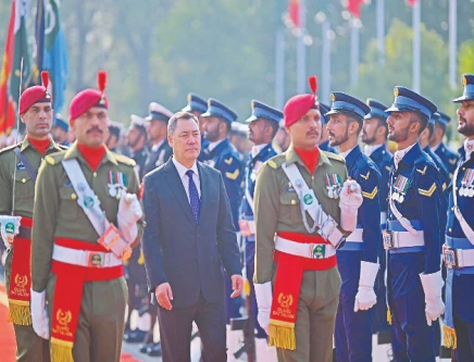 Earlier, upon arrival at the Prime Minister's House, the President of the Kyrgyz Republic was presented guard of honour by a contingent of Pakistan's armed forces.