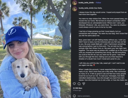 The owner also thanked fans for their years of support, noting how Bella had inspired many to adopt pets or simply brightened their days.