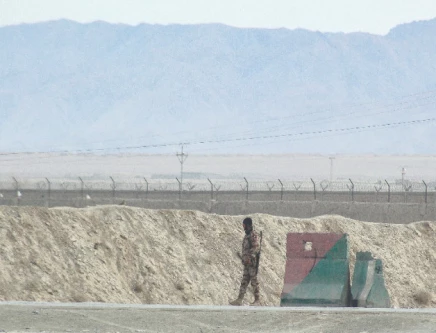 A Pakistani security personnel stands guard at the border along Afghanistan in Chaman, following overnight clashes between forces of the two countries. Photo: AFP