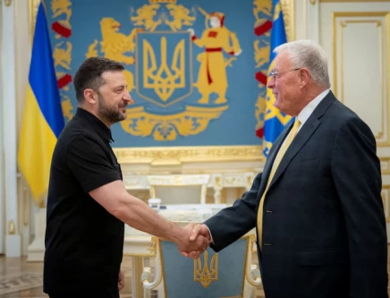 Ukraine's President Volodymyr Zelenskiy shakes hands with U.S. Special Envoy for Ukraine Keith Kellogg as they meet in Kyiv, Ukraine July 14, 2025. PHOTO: REUTERS