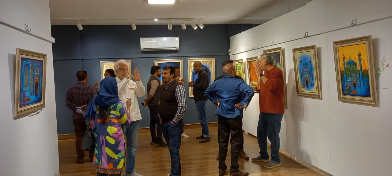 Visitors moved deliberately through the exhibition, noting the architectural details, layered colors, and subtle play of light in Noori’s work. Some paintings suggested the quiet of devotional music, while others depicted a dervish absorbed in ritual, highlighting the connection between physical spaces and spiritual practice.