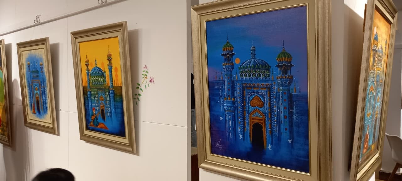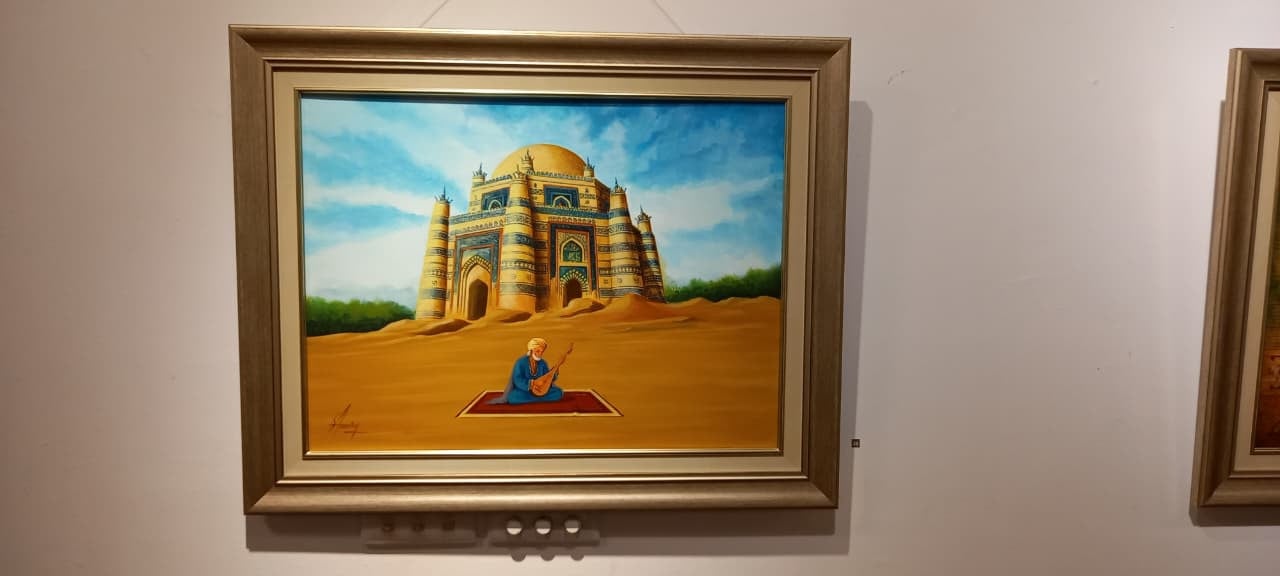 The solo show features 40 paintings inspired by Sufi shrines and spiritual spaces across Karachi