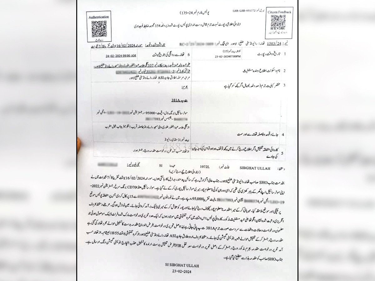 According to police records, the motorcycle was stolen from the Raiwind area in 2024, and an FIR was lodged at Raiwind police station in February 2024. However, the owner has since received multiple e-challans, including a recent one.
