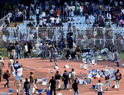 Fans in the Salt Lake stadium in the capital of the Eastern state of West Bengal threw ripped-up seats and other objects onto the field, while several people climbed a fence around the field and hurled objects.