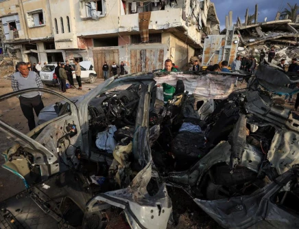 Palestinians inspect the site of an Israeli strike on a car in Gaza City, December 13, 2025.PHOTO: REUTERS