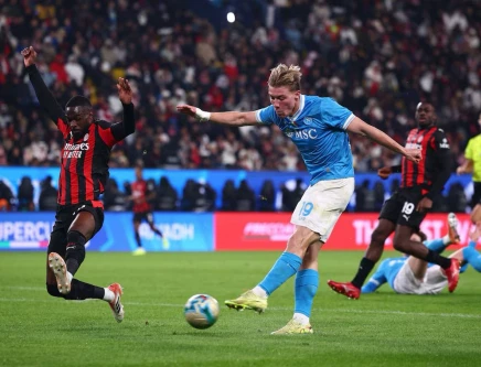 David Neres opened the scoring in the 39th minute with a tap-in at the back post after Hojlund burst down the left and cut the ball back, with goalkeeper Mike Maignan only getting his fingertips to the ball and diverting it to the scorer.