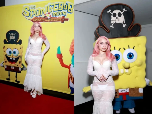 Ice Spice made a playful fashion statement at the New York City screening of The SpongeBob Movie: Search for SquarePants, stepping out in a sheer white lace dress that revealed a coordinating bikini bottom underneath.