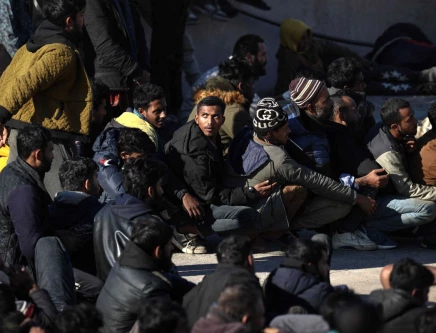 Migrants wait to be transfered at the port of Agia Galini after been rescued by Greek coast guard on the island of Crete on December 19, 2025. PHOTO: AFP