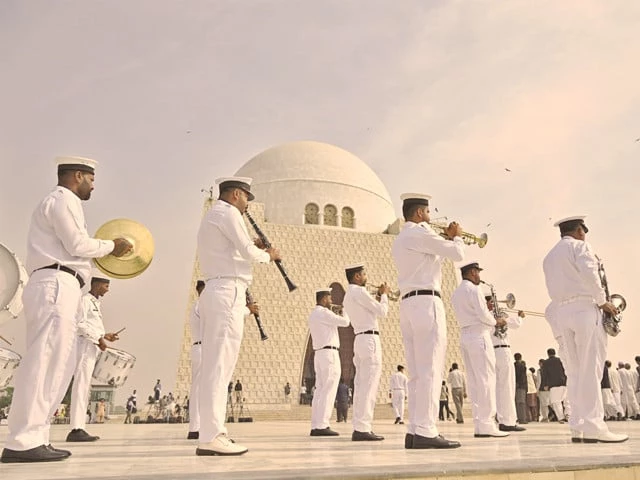 A grand ceremonial guard change was held at Mazar-e-Quaid on Quaid-e-Azam Muhammad Ali Jinnah's 149th birth anniversary on Thursday. A contingent from the Pakistan Military Academy, Kakul, assumed duties, performing a parade and salute at the mausoleum. Commandant PMA Major General Iftikhar Hussain Chaudhry served as the chief guest, laying floral tributes and offering Fatiha at the resting place of the founder of Pakistan. Chief Minister Murad Ali Shah and Governor Sindh Kamran Khan Tessori, along with other prominent dignitaries, paid homage to Quaid-e-Azam.