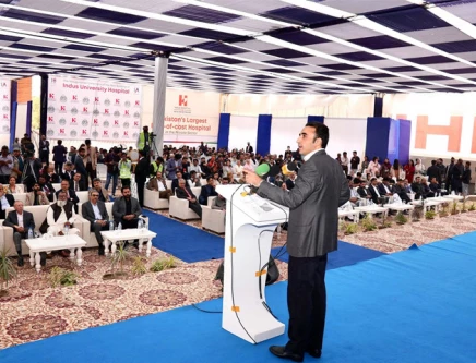 The Indus University Hospital, set to become Pakistan's largest free treatment facility, will accommodate 1,350 beds upon completion in three years. It features modern emergency and outpatient facilities, advanced diagnostic units, 36 state-of-the-art operation theatres, cancer care and research centres, and a Health Sciences University linking seven colleges for integrated medical education and services.