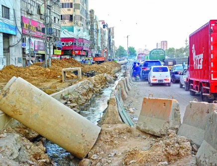 As 2025 comes to a close, the city grapples with consequences of unfinished development projects — broken roads, blocked sewers, and rising pollution continue to endanger public health. Photo: Express