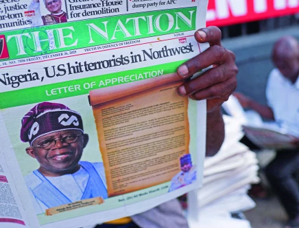 People read newspapers reporting on US airstrikes against Islamic State militants in Lagos, Nigeria. Photo: Reuters