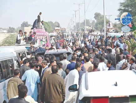 A convoy of PPP leaders and workers heads to Garhi Khuda Bakhsh to participate in the 18th death anniversary of former PM Benazir Bhutto, paying tribute and reaffirming their commitment to her legacy. Photo: PPI