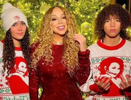 The singer posted the image on Instagram showing herself standing between her 14-year-old twins in front of a decorated Christmas tree. Moroccan and Monroe, whom Carey shares with ex-husband Nick Cannon, wore matching Christmas jumpers featuring their mother and the title of her holiday song, “All I Want for Christmas Is You,” paired with coordinated jeans. Monroe completed the look with an MC beanie, while Carey wore a long red sequinned dress.