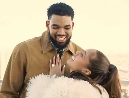 Photos from the post captured the emotional moment as Towns dropped to one knee while Woods reacted with visible surprise and joy. Woods was dressed in a white coat layered over a matching dress, her look completed with a sleek ponytail that complemented the refined setting. Towns opted for a sophisticated suede jacket paired with black trousers, reflecting the intimate yet celebratory mood of the evening.