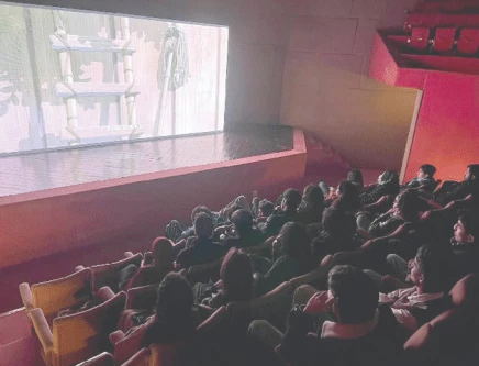 Visitors watch a Japanese film being screened at the Alhamra Art Centre during a special screening organised under the auspices of the Alhamra Film Club. Photo: NNI
