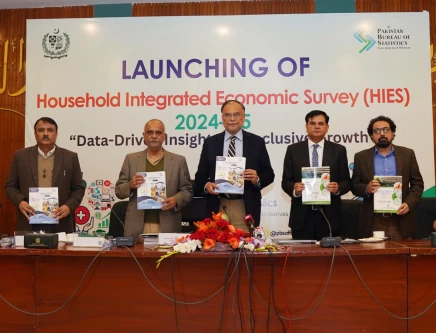 Minister for Planning, Development and Special Initiatives Ahsan Iqbal launches the Household Integrated Economic Survey (HIES) 2024–25 at a ceremony organised by the Pakistan Bureau of Statistics in Islamabad on Thursday, Jan 01, 2026. Photo: PID.