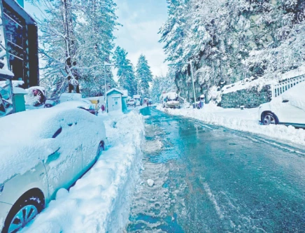 The Galiyat region witnessed snowfall on the first day of the new year, while power supply along the Abbottabad-Murree Road was suspended due to slippery conditions. Shogran recorded more than five inches of snow, while Kaghan district received over two inches, complicating travel in the region.