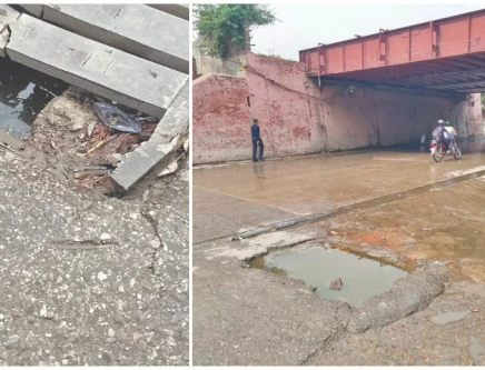 Local residents Shahbaz Ali and Raja Faisal said all four roads converging at the junction are in a dilapidated state, with manhole covers missing for a long time and the sewerage system badly disrupted. They added that roads from Shaheen Chowk to Taj Company Bridge are severely damaged, while iron railings have remained broken for years.