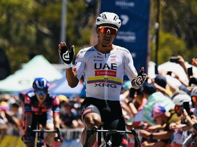 Ecuador's Narvaez (UAE Team Emirates) won a heart-pumping climb up Willunga Hill to help claim the Ochre Jersey in Adelaide in 2025 ahead of Spain's Javier Romo (Movistar Team).