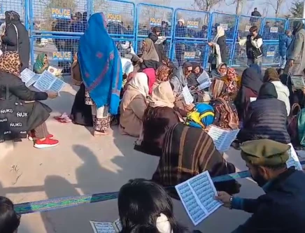 The sit-in led by Aleema is continuing at the Factory checkpoint on Adiala Road, Rawalpindi. The PTI founder's other two sisters, Noreen Niazi and Uzma Khan, are also present. The valve of a water tanker parked at the site was opened, causing water to spill and soak the area where the protesters were seated. After the incident, participants shifted to another spot. Police later removed the water tanker from the protest site.