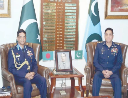 Pakistan and Bangladesh took another step towards deepening defence cooperation on Tuesday as a high-level Bangladesh Air Force (BAF) delegation, led by Air Chief Marshal Hasan Mahmood Khan, held talks with Chief of Air Staff Air Chief Marshal Zaheer Ahmed Baber Sidhu at the Air Headquarters with discussions also covering the potential procurement of JF-17 Thunder fighter aircraft.