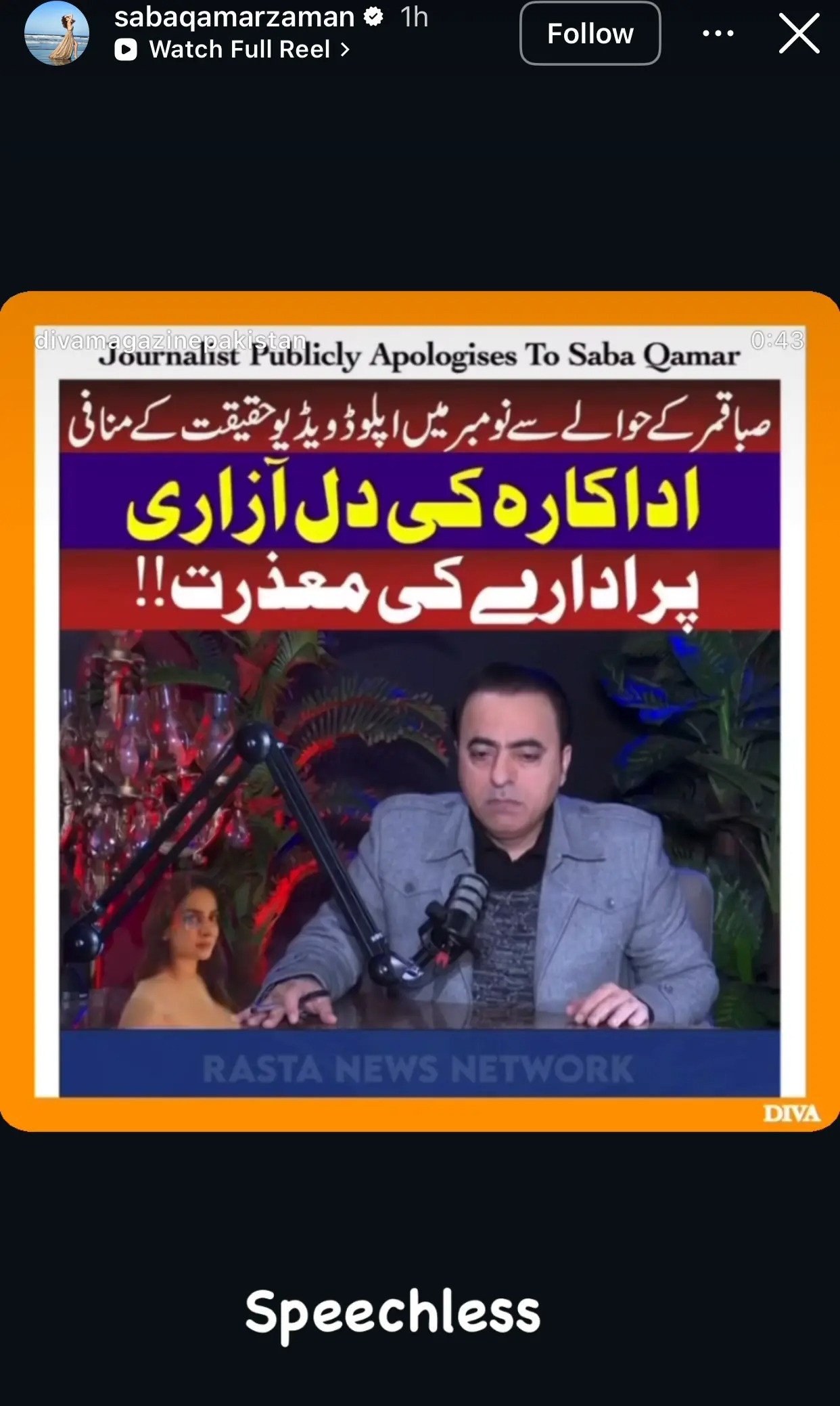 Qamar responded to the apology by sharing it to her Instagram story, with the caption “Speechless”.