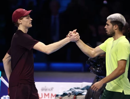 Italy's Jannik Sinner and Spain's Carlos Alcaraz shake hands after the final. Photo: REUTERS