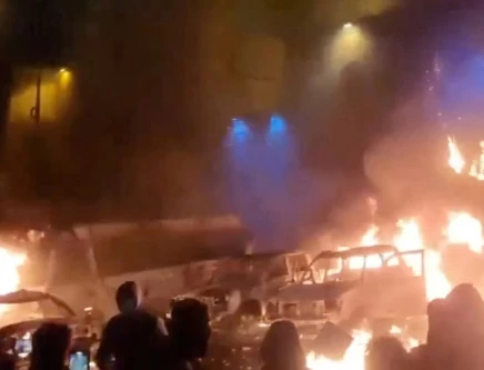 Protesters gather as vehicles burn, amid evolving anti-government unrest, in Tehran, Iran, in this screen grab obtained from a social media video released on January 9, 2026. PHOTO: REUTERS