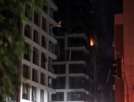 Fire burns in a building at an impact site following a missile attack from Iran on Israel, at Tel Aviv, Israel, June 13. REUTERS/Itai Ron