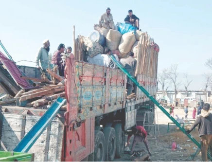 Afghan refugees load their belongings onto a truck in Haripur as they prepare to return to their homeland following the Pakistan government’s directive for all illegal migrants to leave the country. Photo: PPI