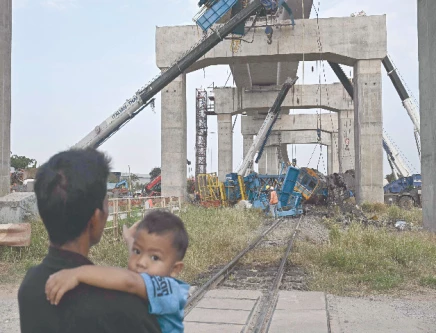 32 Thais killed as crane collapses onto train