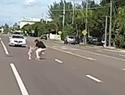 A Florida father of five is being praised for a split-second decision that likely prevented a tragedy after he rushed into traffic to rescue two toddlers who had wandered onto a busy roadway.