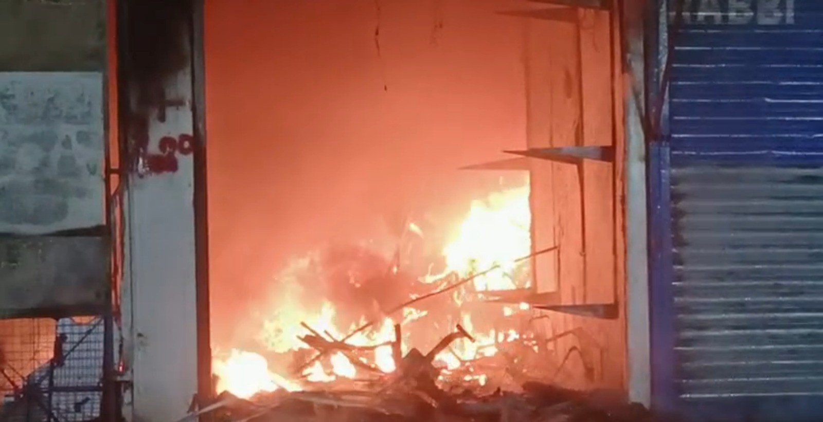 Visuals showed plumes of smoke in the night sky as the blaze reached the third floor and shopkeepers rushed to salvage their wares.
