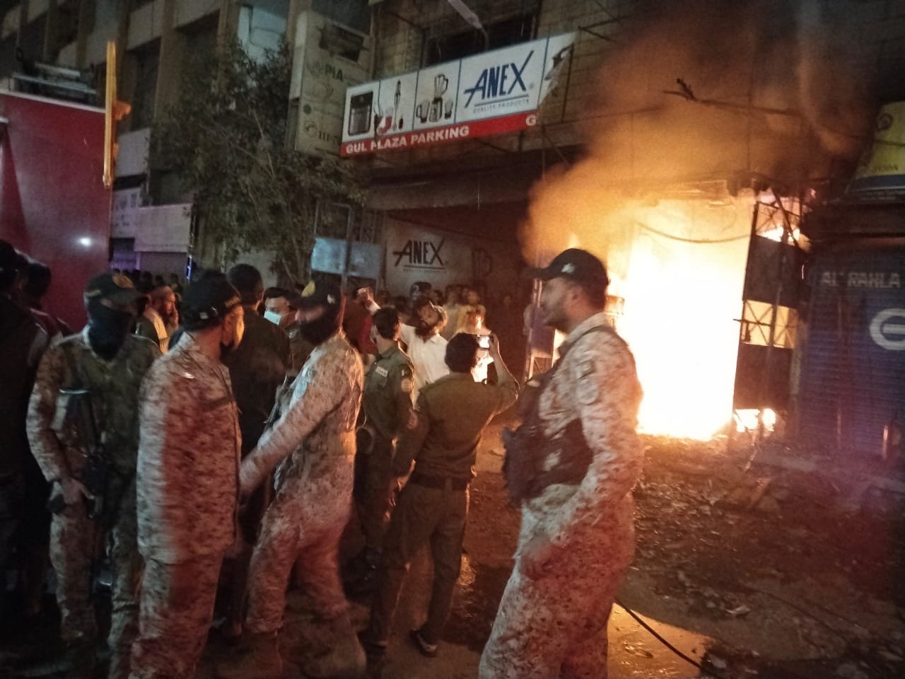 A statement from Rescue 1122 said it received information about the fire at Gul Plaza, following which fire and rescue teams, along with ambulances and fire brigade trucks, were immediately dispatched to the scene.