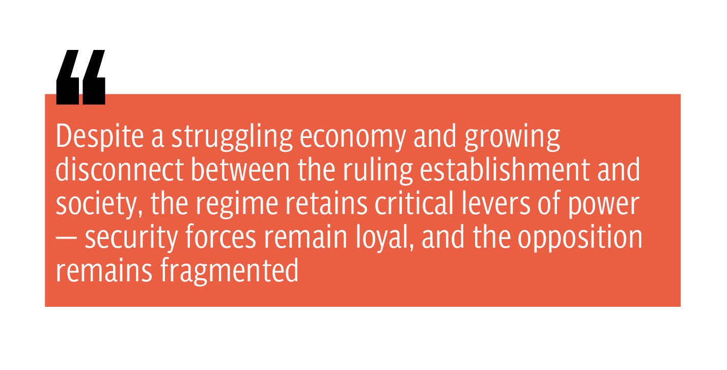 Despite high inflation, a struggling economy, water shortages, and growing disconnect between the ruling establishment and society, Haas argues that the regime retains critical levers of power – oil exports continue, security forces remain capable and loyal, and the opposition remains fragmented. He notes that the Iranian government may be closer to collapse than at any point since the clerics took over, yet it is still far from falling. The brutal suppression of the protests that began in late December is thus consistent with a regime intent on survival, rather than a signal that its demise is imminent.