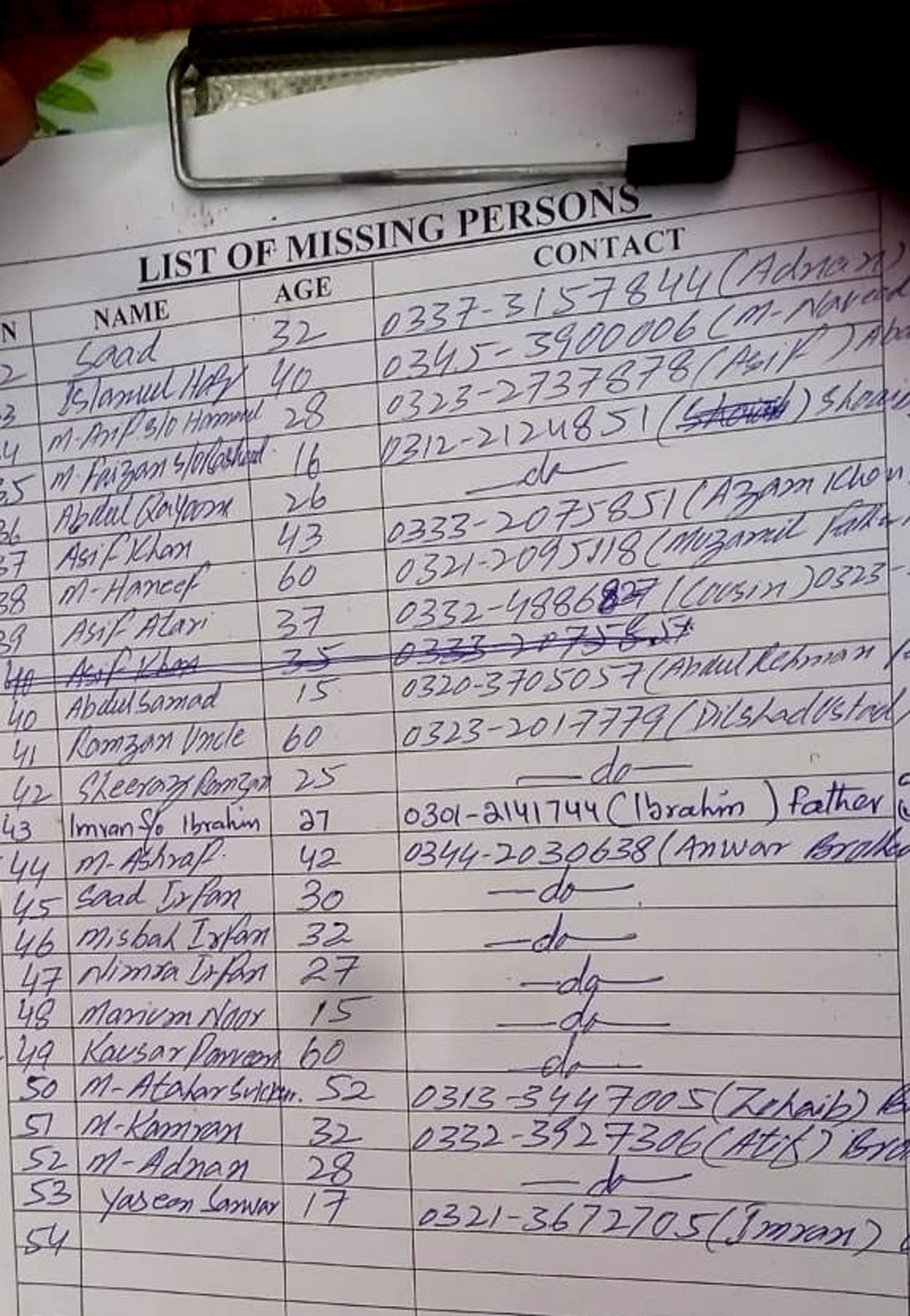 DIG South Asad Raza said police had obtained mobile numbers of 59 missing people and traced the locations of at least 26 near Gul Plaza. “Further scrutiny is under way,” he said, adding that a police helpline had been set up on the orders of the Sindh government.