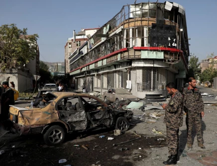 FILE: Members of Afghan security forces keep watch at the site of yesterday's night-time car bomb blast in Kabul, Afghanistan August 4, 2021. PHOTO: REUTERS