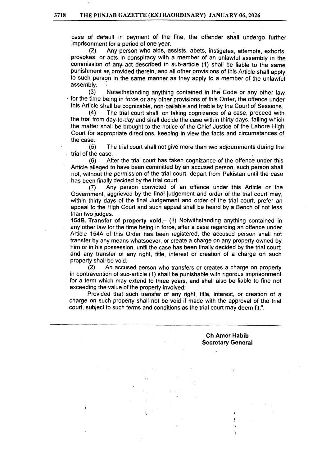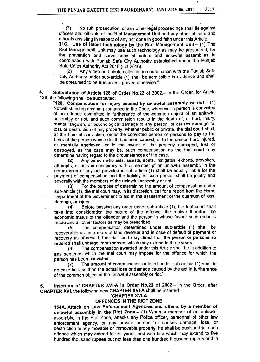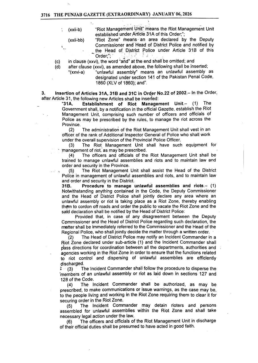 Amendments to the Punjab Police Order designate protest organisers, local facilitators, and participants as collectively liable for any unrest, vandalism, or loss of life and property. To further strengthen enforcement, special anti-riot committees comprising deputy commissioners and regional police officers have been established.