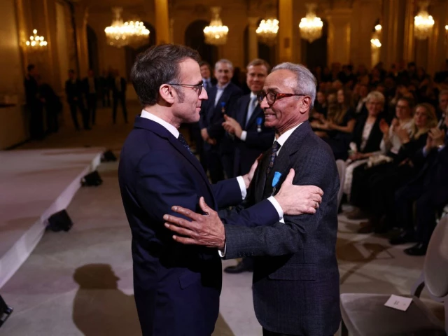 The French president praised Akbar's "incredible destiny", thanking the septuagenarian for arriving from Pakistan decades ago, selling newspapers for 50 years and carrying France in his heart.