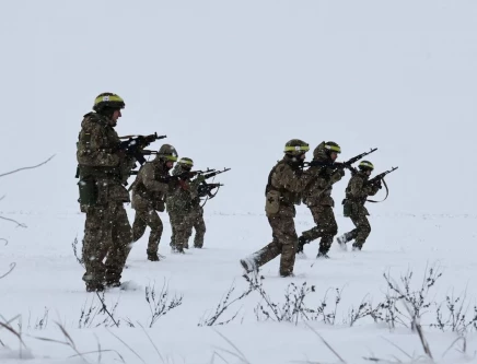Recruits of the 65th Separate Mechanized Brigade of the Ukrainian Armed Forces during a training exercise o the frontline, in Zaporizhzhia region, Ukraine, December 29.PHOTO: REUTERS