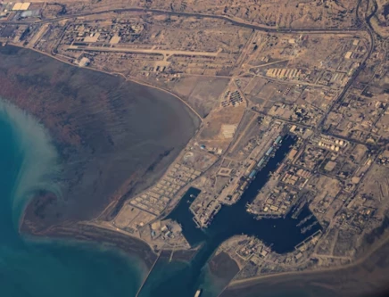 An aerial view of the Iranian shores and Port of Bandar Abbas in the strait of Hormuz, December 10, 2023. Photo: Reuters